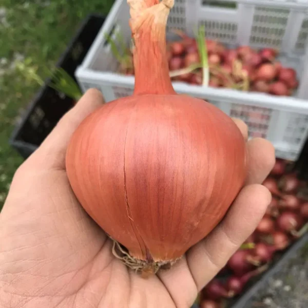Mid-season, intermediary to long day. Burgaz Purple is a beautiful “red” bulb onion from Turkey. Mid-size, firm bulbs have tear-drop to round shape and reddish purple skin. Does well in storage from 4-6 months.