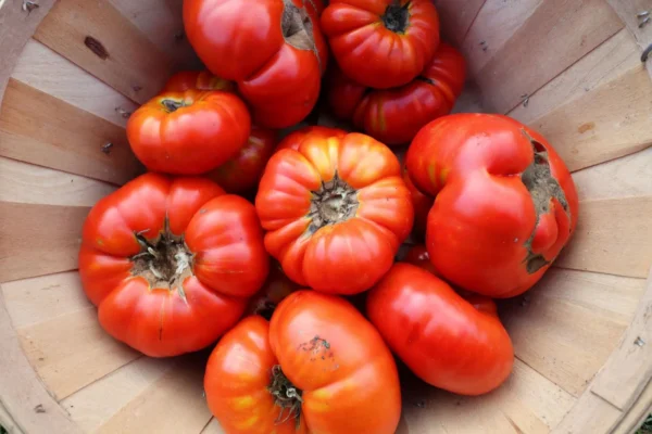 Maniye is a red tomato that hails us from Safranbolu, Turkey. Its excellent flavor, juicy and meaty flesh as well as its large fruits makes it one of our favorite heirloom tomatoes we grow in our field. Indeterminate plants are loaded with fruits many of which ripen all at once and keep producing until frost.